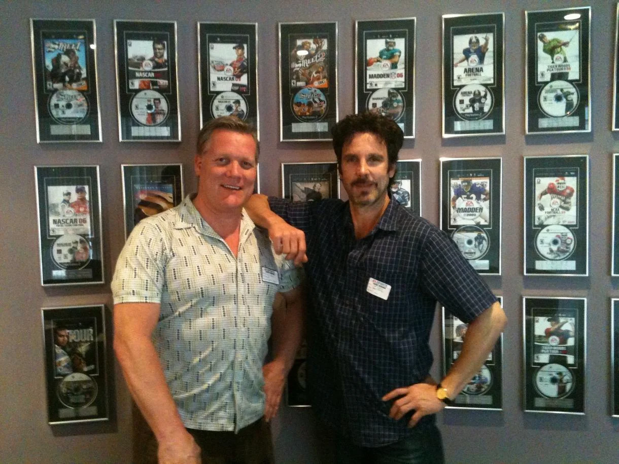 Tim Kitzrow and Brian Haley at EA Sports Studios recording NFL Blitz.
